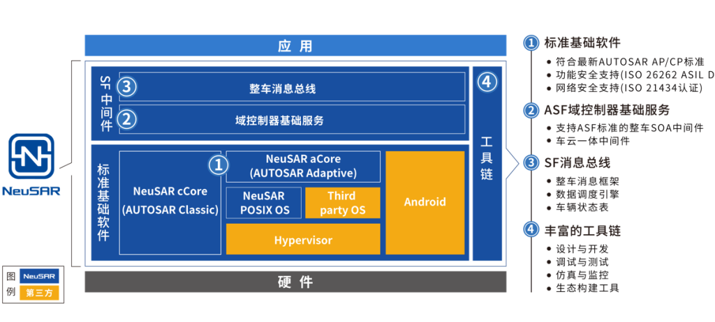 NeuSAR SF(Service Framework)是兼容ASF標(biāo)準(zhǔn)的SOA中間件,并提供針對(duì)不同場(chǎng)景抽象一致的通信能力及基礎(chǔ)服務(wù),把開發(fā)視圖從域控制器層面擴(kuò)展到整車層面,是支撐整車SOA的關(guān)鍵組件與落地架構(gòu)。