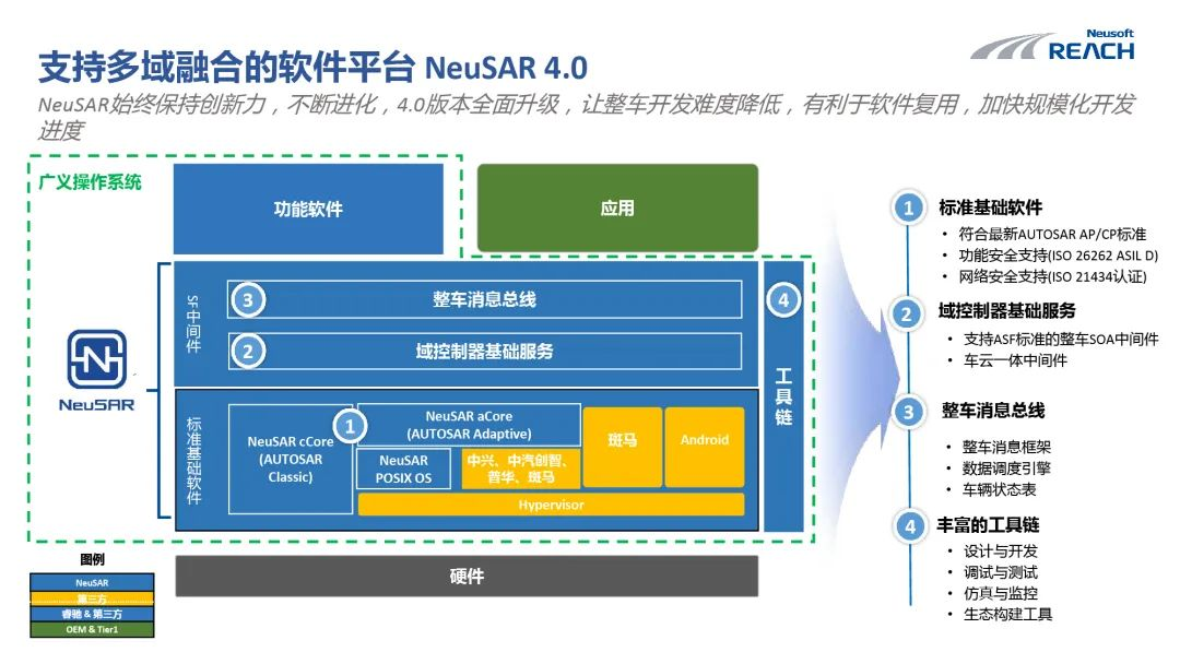 “繼往開來”:AUTOSAR通用標(biāo)準(zhǔn)架構(gòu)提供了穩(wěn)定的底層平臺及開發(fā)方法學(xué),本土化基礎(chǔ)軟件平臺要在繼承中發(fā)展 、發(fā)展中創(chuàng)新,積極地推出新標(biāo)準(zhǔn)、新框架、新工具和模塊等,構(gòu)建支持多核異構(gòu)硬件體系、標(biāo)準(zhǔn)框架、跨域協(xié)同的創(chuàng)新方法學(xué),為車企提供強(qiáng)大的支撐。