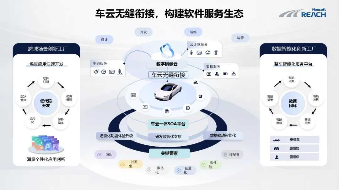 東軟睿馳基于車云一體化、低代碼、輕量化、服務(wù)化、引擎化的設(shè)計理念,構(gòu)建面向車-云融合的整車全棧軟件平臺及工具鏈,賦能廣汽構(gòu)建完整、高效、易用的軟件開發(fā)框架及系統(tǒng)軟件平臺產(chǎn)品和服務(wù)。