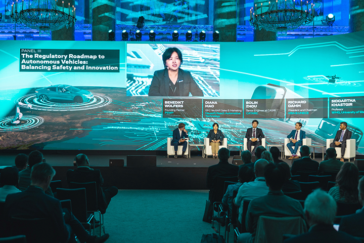 茅海燕在討論中分享了作為行業(yè)SDV領(lǐng)域的技術(shù)代表,對(duì)L3/L4級(jí)別自動(dòng)駕駛領(lǐng)域的安全架構(gòu)以及全球跨區(qū)域法規(guī)合作的見(jiàn)解,倡導(dǎo)建立全球協(xié)同驗(yàn)證標(biāo)準(zhǔn)的監(jiān)管框架、鼓勵(lì)功能導(dǎo)向技術(shù)創(chuàng)新,將法規(guī)制定與商業(yè)模式、資本風(fēng)險(xiǎn)管控相結(jié)合,同時(shí)對(duì)基于人工智能的自適應(yīng)、持續(xù)學(xué)習(xí)等非確定性技術(shù)架構(gòu)進(jìn)行監(jiān)管包容,在確保安全底線的前提下加速技術(shù)創(chuàng)新,以推動(dòng)自動(dòng)駕駛的規(guī)?;c產(chǎn)業(yè)化落地。汽車(chē)作為全球化產(chǎn)業(yè),需要國(guó)際化的標(biāo)準(zhǔn)協(xié)同,中國(guó)在智能網(wǎng)聯(lián)汽車(chē)產(chǎn)業(yè)的快速發(fā)展源于長(zhǎng)期戰(zhàn)略投入,東軟睿馳期待通過(guò)全球合作共享經(jīng)驗(yàn),促進(jìn)成本優(yōu)化與效率提升,共同推動(dòng)全球智能汽車(chē)產(chǎn)業(yè)實(shí)現(xiàn)規(guī)?;沙掷m(xù)發(fā)展。