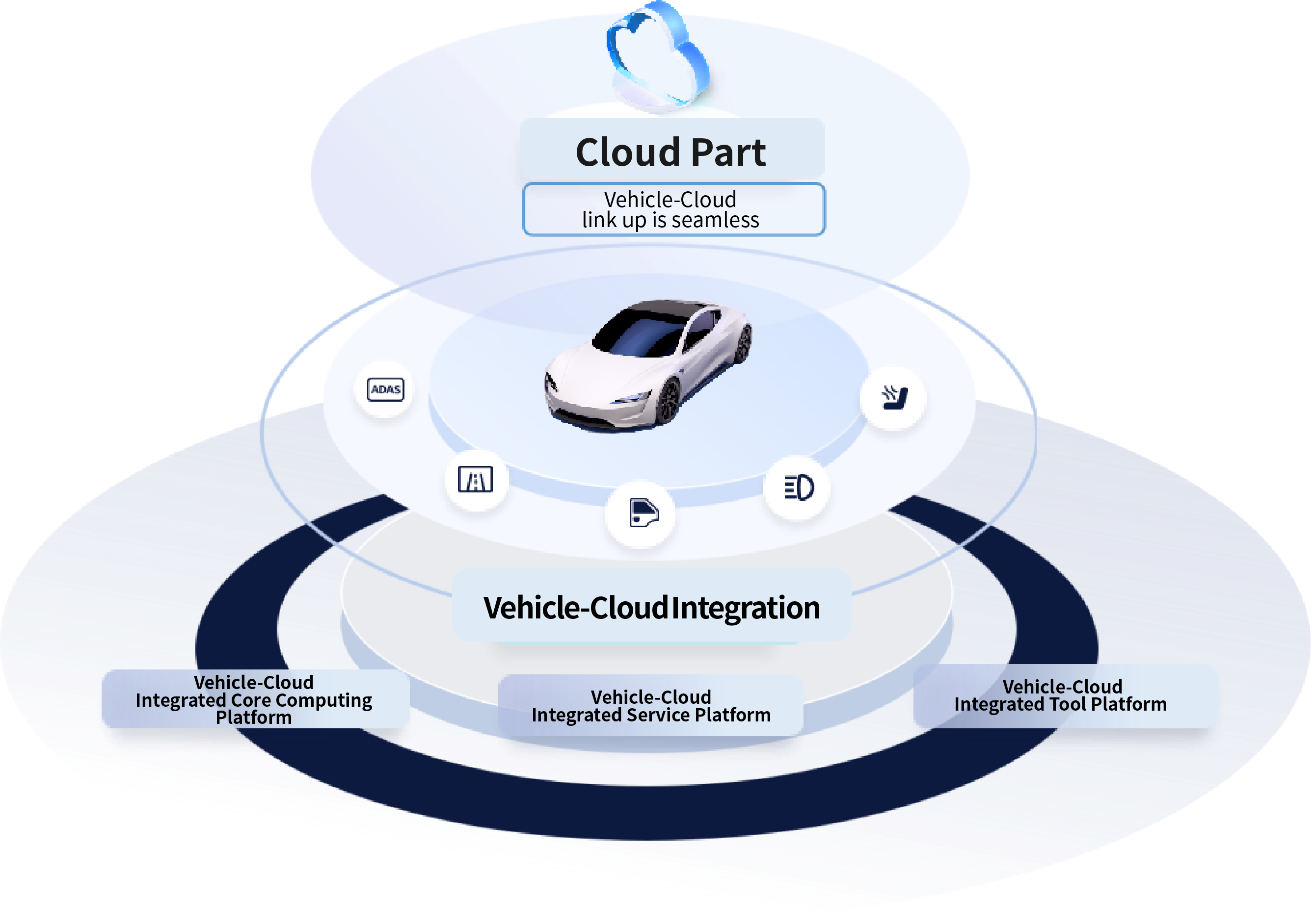 Based on the SOA architecture, it horizontally pulls the collaboration between various ECUs within the vehicle, vertically achieves data exchange and computing services between vehicle and cloud, empowers vehicle enterprise function development cycles from "year" to "day", and function iteration cycles from "month" to "hour".
