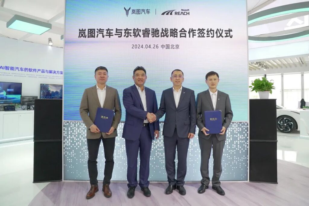 圖為嵐圖汽車與東軟睿馳戰(zhàn)略合作簽約儀式現(xiàn)場(chǎng)