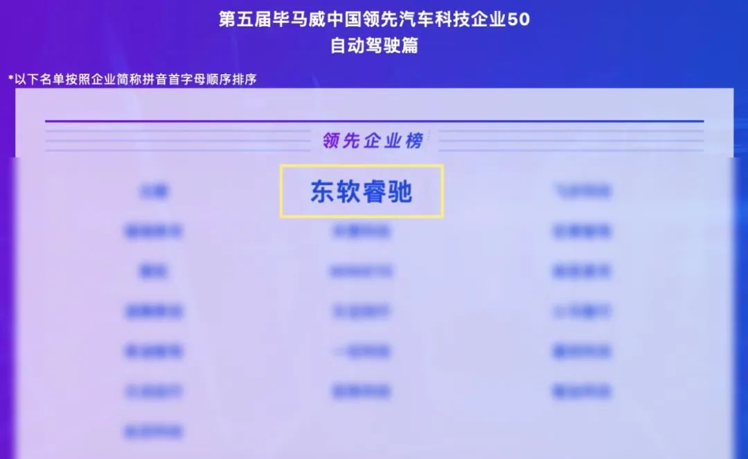 東軟睿馳再獲畢馬威《中國(guó)領(lǐng)先汽車科技企業(yè)50》殊榮