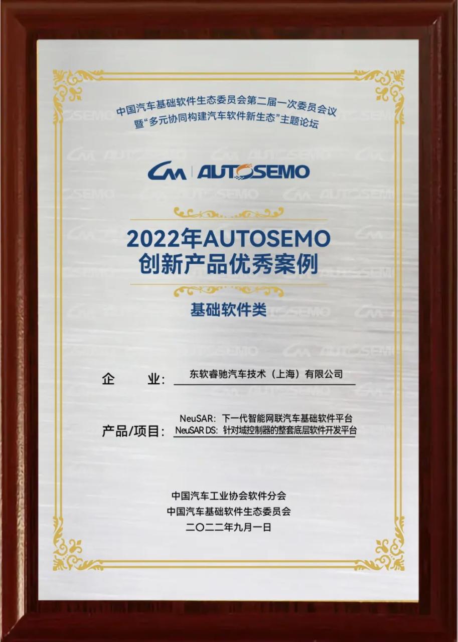 9月1日,中國(guó)汽車基礎(chǔ)軟件生態(tài)委員會(huì)(AUTOSEMO)第二屆一次委員會(huì)暨“多元協(xié)同構(gòu)建汽車軟件新生態(tài)”主題論壇在南京召開。東軟睿馳面向下一代智能網(wǎng)聯(lián)汽車的基礎(chǔ)軟件平臺(tái)NeuSAR及針對(duì)域控制器的軟件開發(fā)平臺(tái)NeuSAR DS榮獲“2022 AUTOSEMO創(chuàng)新產(chǎn)品優(yōu)秀案例”獎(jiǎng)項(xiàng);由東軟睿馳、中興通訊及芯馳科技聯(lián)合打造的全國(guó)產(chǎn)化車控平臺(tái)解決方案榮獲“2022 AUTOSEMO生態(tài)合作優(yōu)秀案例”。